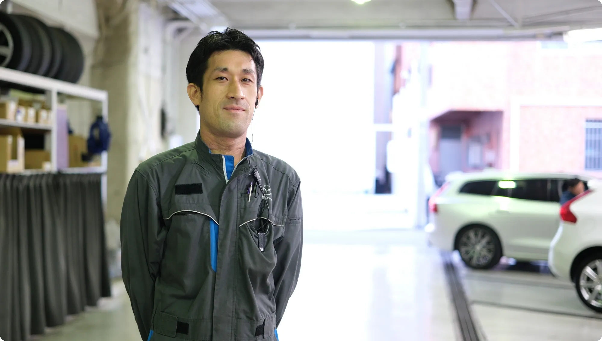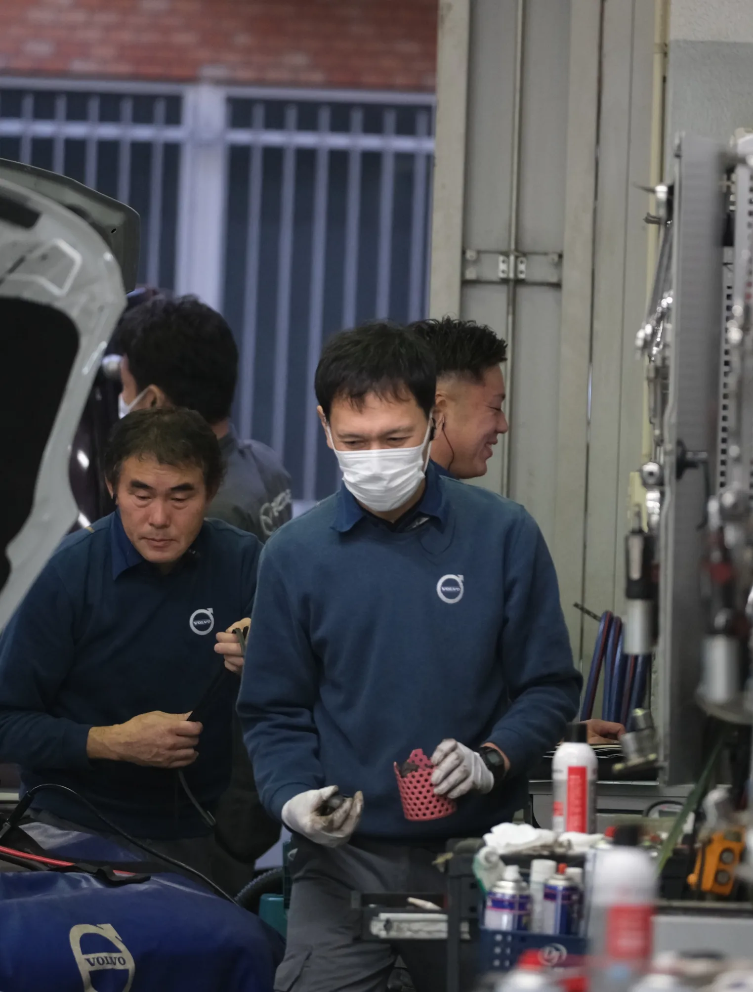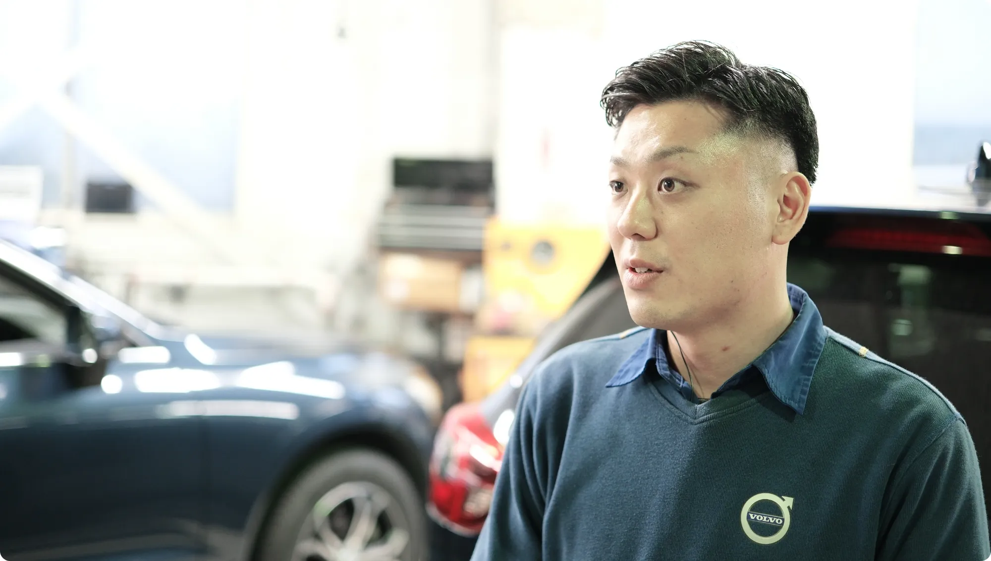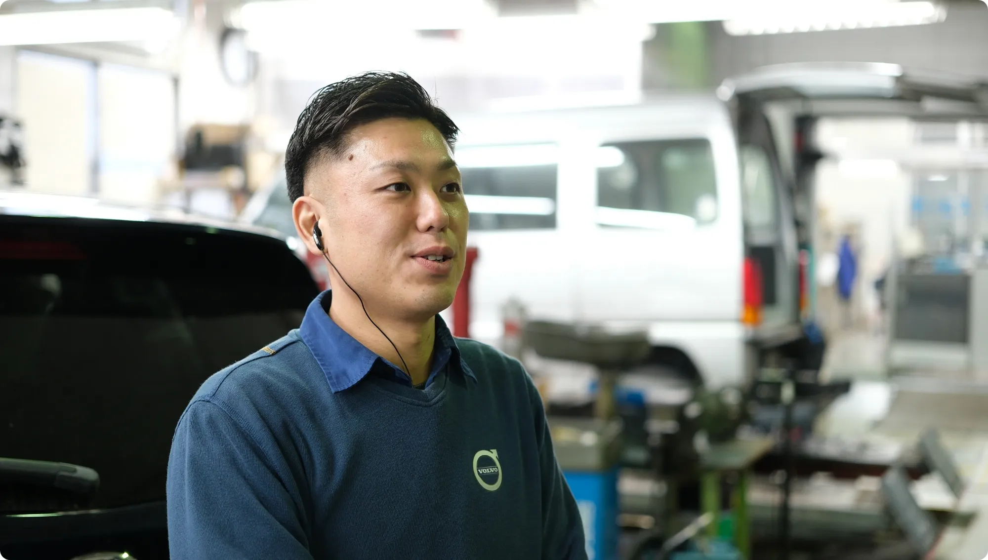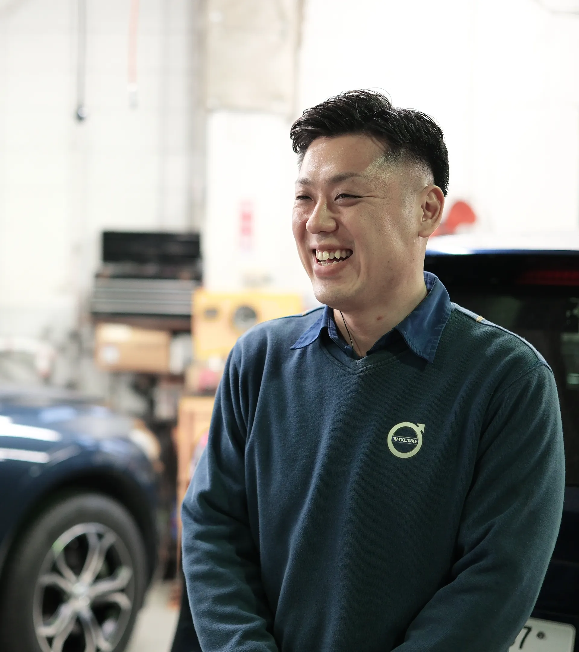 「社員やその家族に無理をさせたくない」という社長の考えのもと、月の残業は平均10時間程度。整備士の場合は一人あたりの担当台数を明確に決めており、業務が集中しすぎない体制を整えています。ボルボ車の整備は二人一組で、1日あたり点検4台・車検4台までとルール化。計画的に仕事を進められるからこそ、仕事とプライベートの両立ができます。